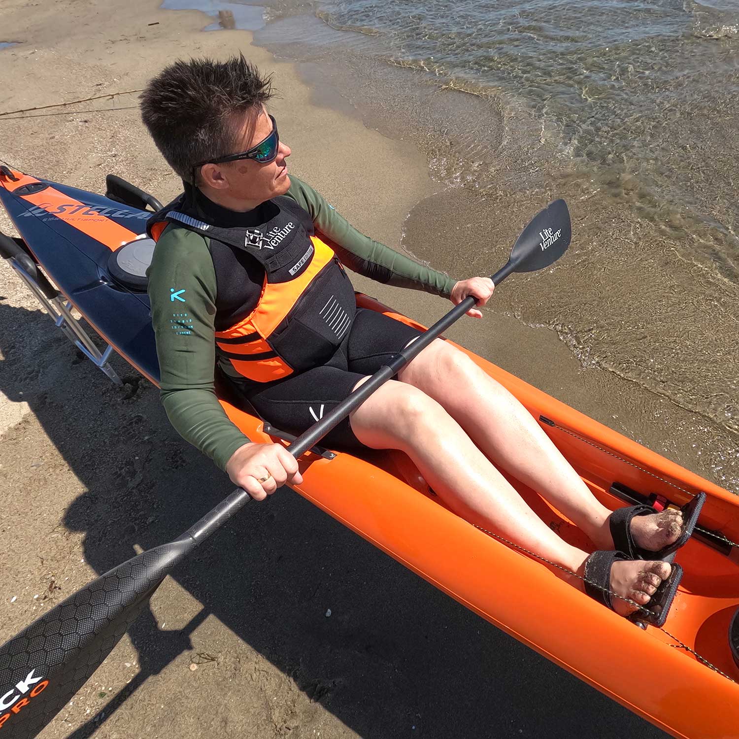 Mit 16 bis 18 Kilo im robusten Carbon/Kevlar Layup sind die SoT Kajaks sehr leicht und damit gut auch alleine handhabbar.