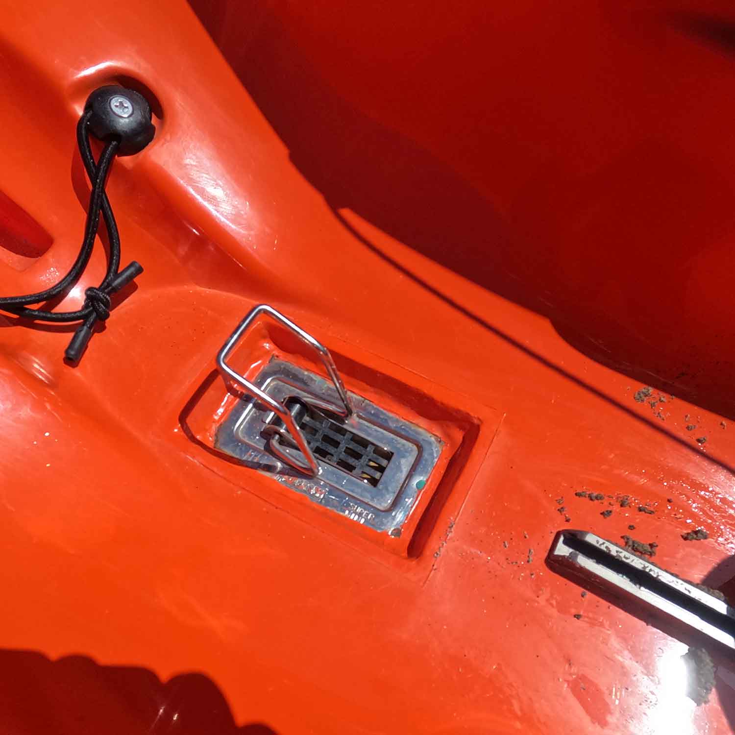 Eine Lenzöffnung – der sogenannte Bailer – am tiefsten Punkt des Cockpits ermöglicht ein passives Absaugen des Spritzwassers, das mit der Zeit ins Boot kommt.
