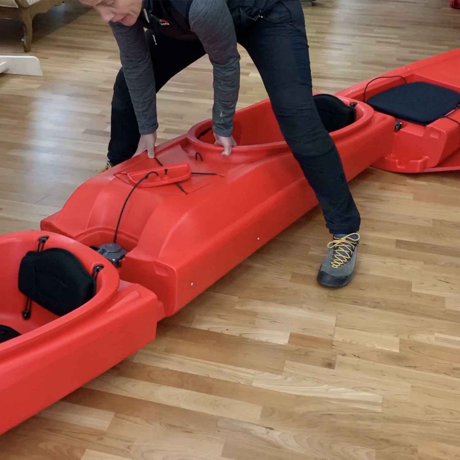 Tatsächlich ist es sehr gut möglich, die drei Modulteile des Natseq Kajaks innerhalb von 30 Sekunden zu einem Kajak zusammenzusetzen, mit dem man sofort startklar ist. Mit einem vierten Modulteil kann es einfach zu einem Tandemkajak ergänzt werden.
