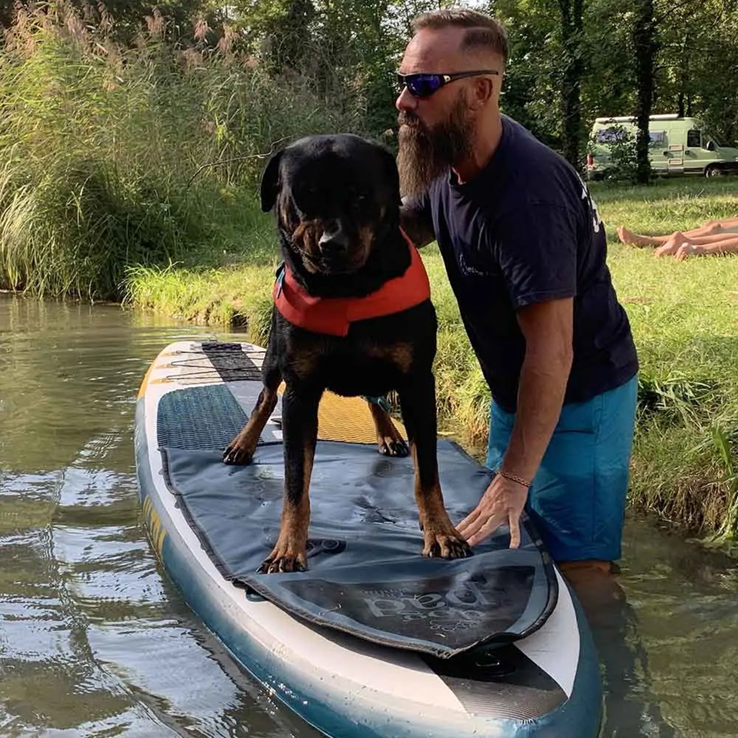 "Das Dog Pad eignet sich hervorragend dafür, den Hund auch abseits des Wassers an seinen Platz auf dem Board zu gewöhnen.“