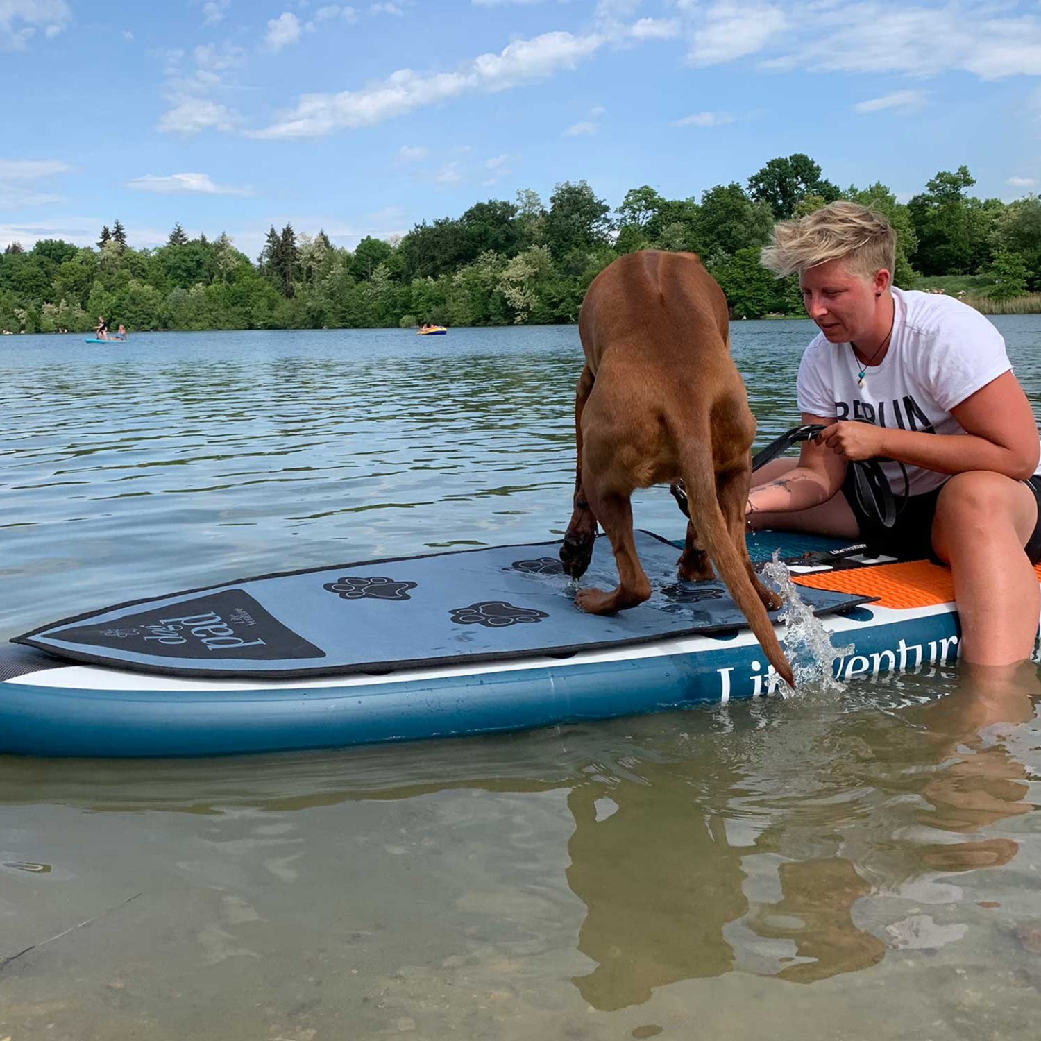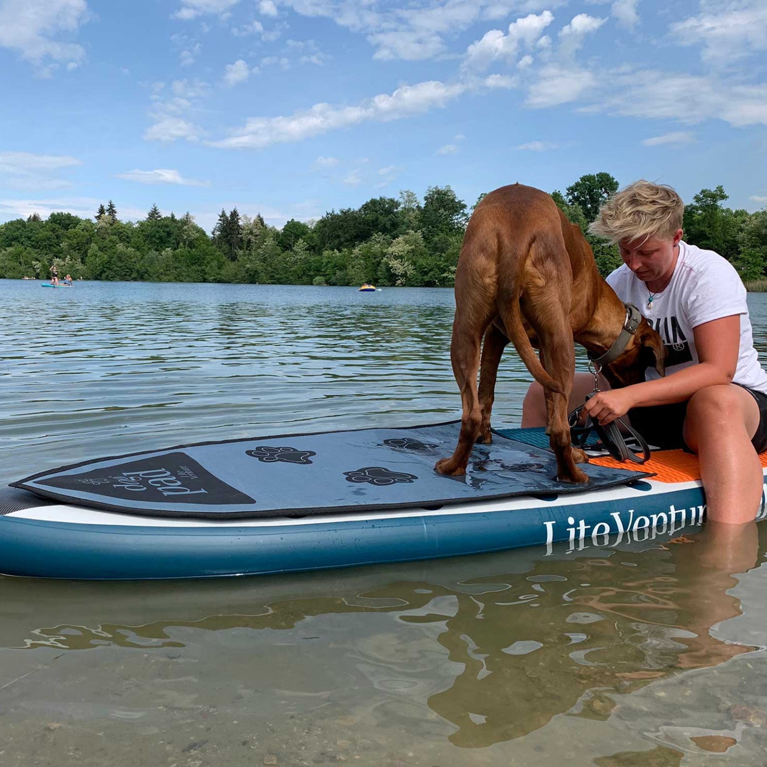 Ideal zum Trainieren: Mit dem Dog Pad kann der Hund auch abseits des Wassers, schon von zuhause aus auf das Paddeln vorbereitet werden: Man kann gut trainieren, dass er auf dem Pad „Platz“ nehmen soll und er lernt, dass hier sein Platz ist. Die Decke ist also bereits vertraut, wenn es auf's Wasser geht.