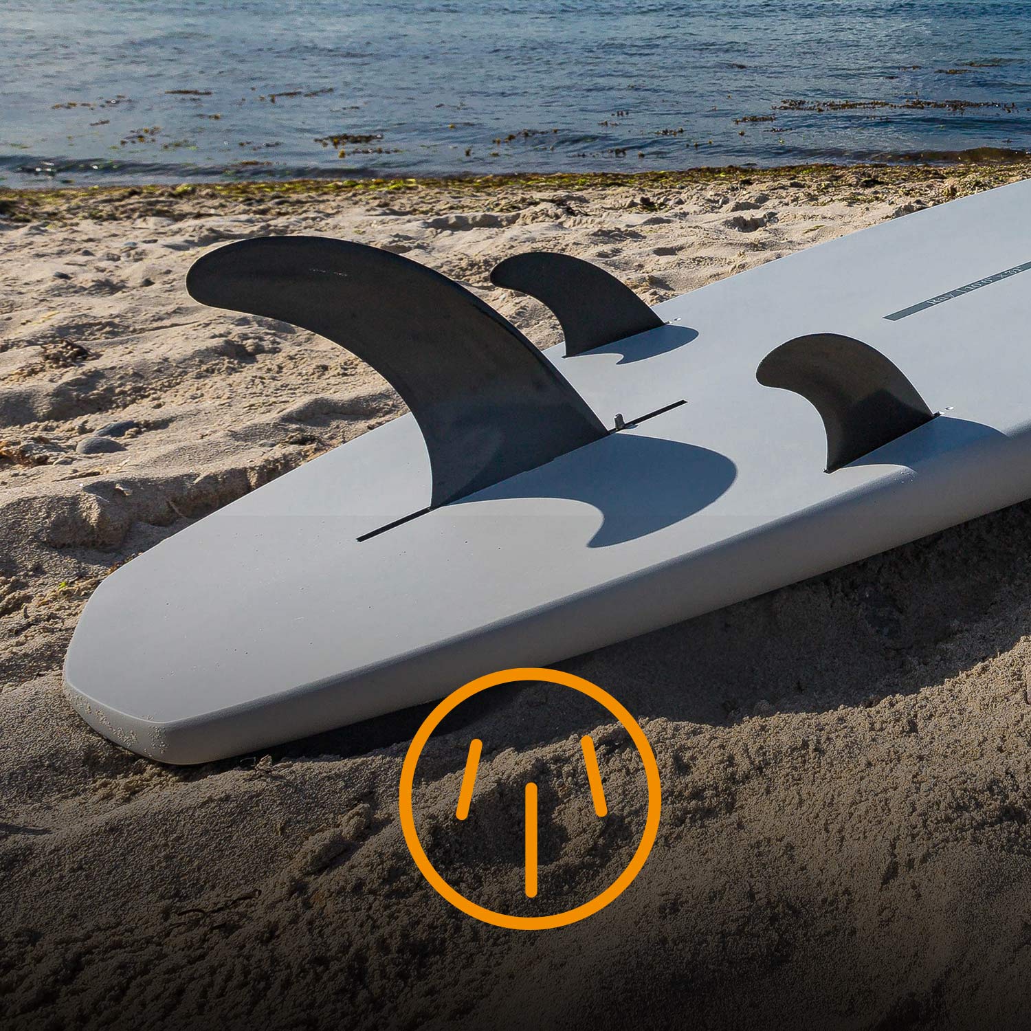 Non-slip deck pad and three fins distinguish the 10'6 Ray Supsurf from the 10'6 Ray.