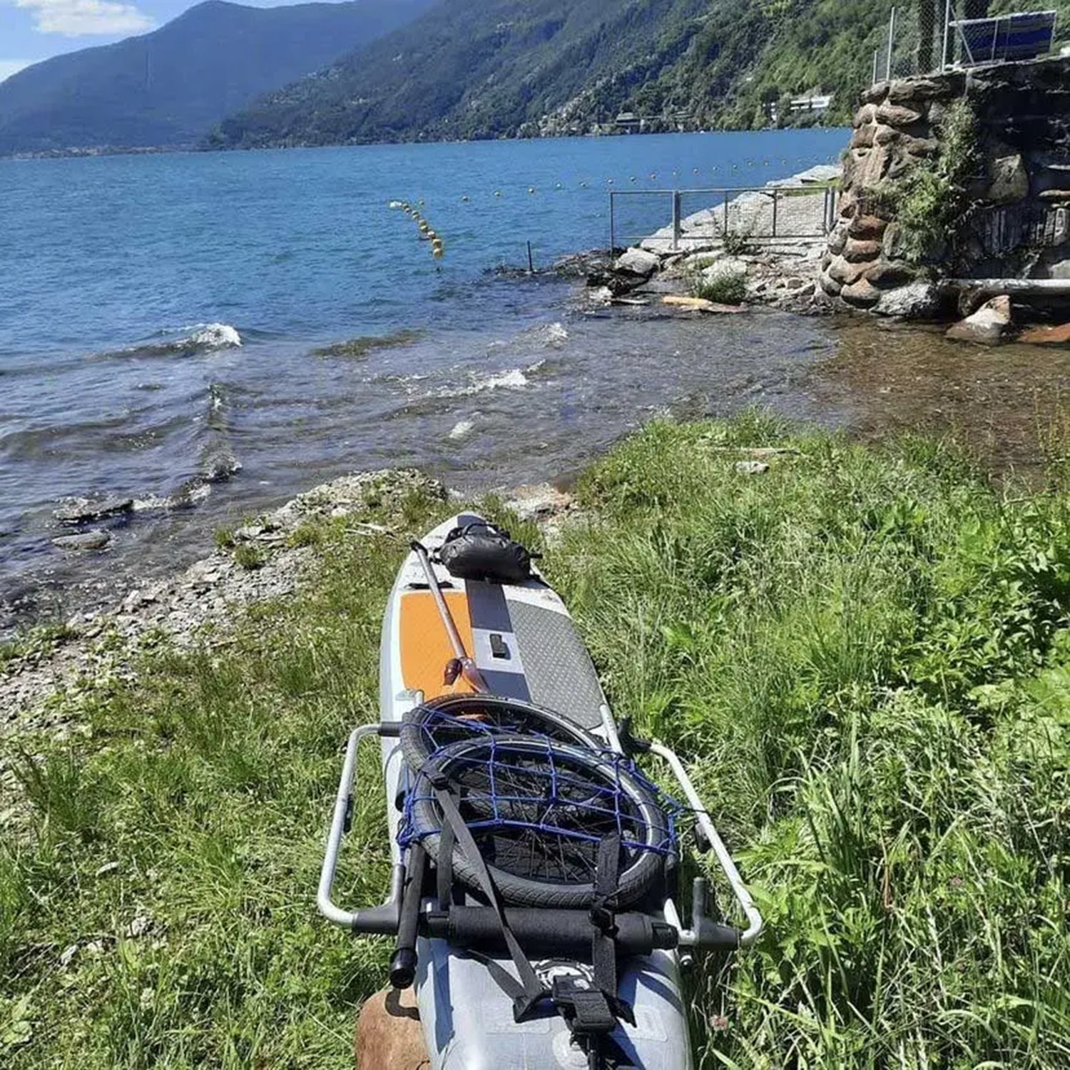 Le SUP ULTRA Rapide avec bagages sur le chariot Reacha.