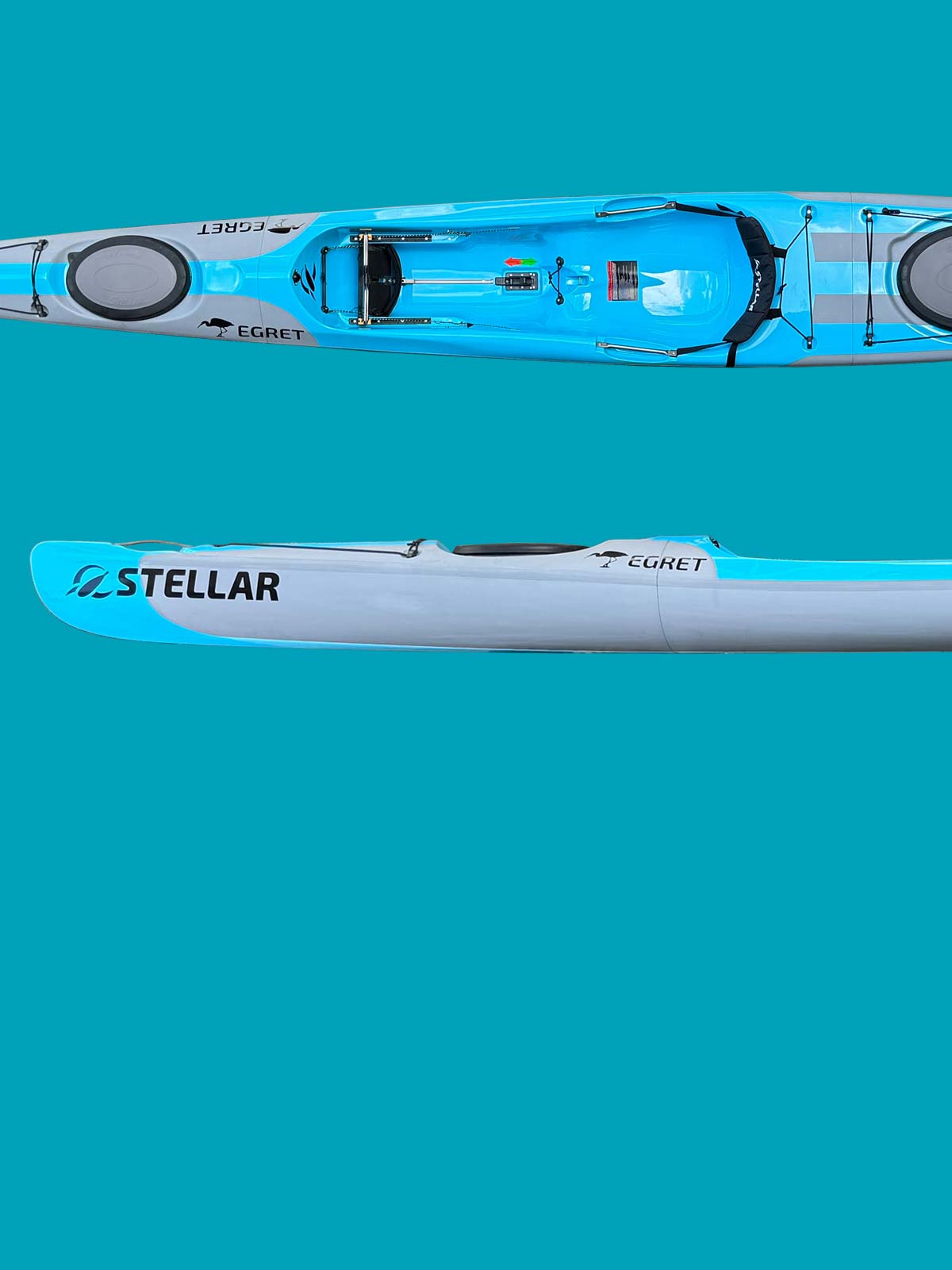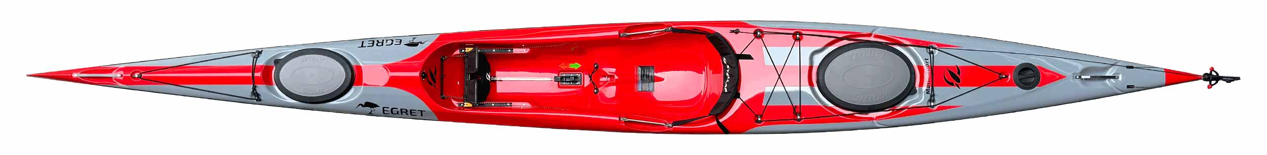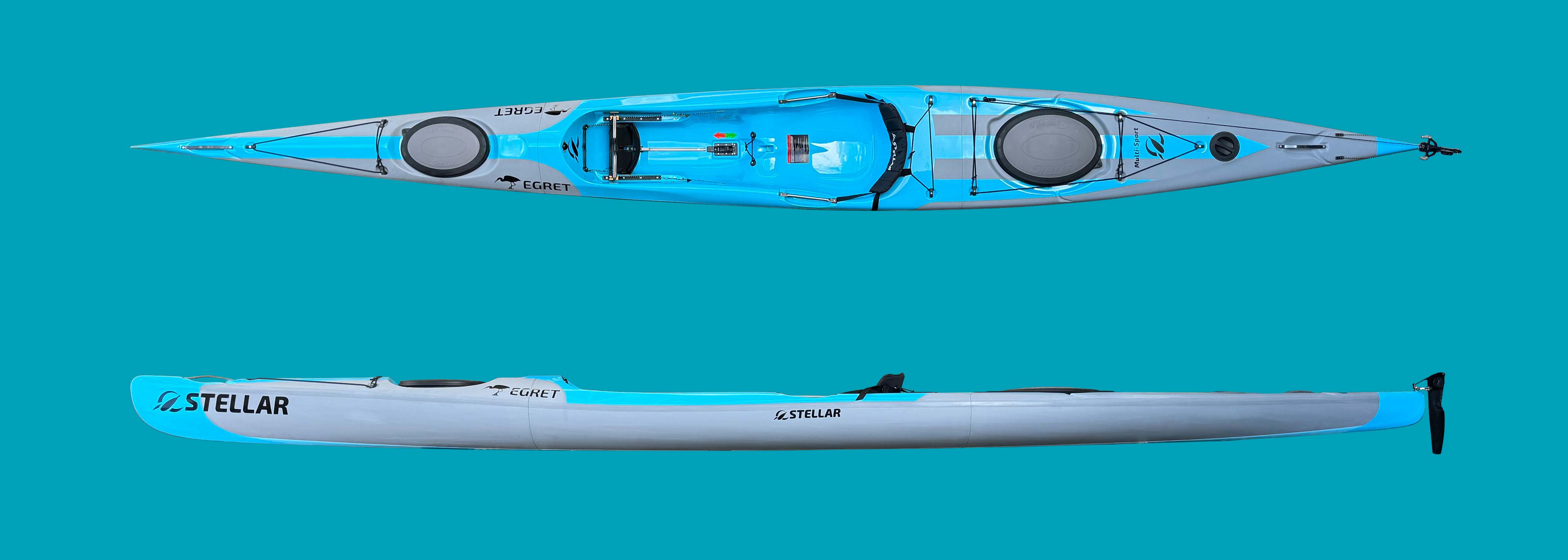 Le Stellar Egret a un concept de bateau qui combine les avantages d'un ski de surf avec ceux d'un kayak de randonnée : le siège ouvert permet différentes positions assises et un embarquement et un débarquement rapides. Les trappes à bagages permettent d'emporter des bagages pour des randonnées de plusieurs semaines.