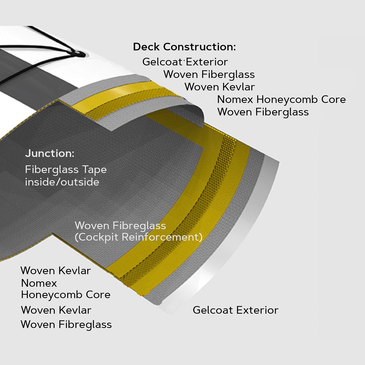 Tous Stellar les layups permettent d'obtenir un bateau léger et rigide. Advantage (fibre de verre) et Multisport (carbone-Kevlar) sont les choix pour les Stellar kayaks de randonnée, Excel et Alpha sont optimisés pour les exigences ambitieuses du surfski et de la compétition :