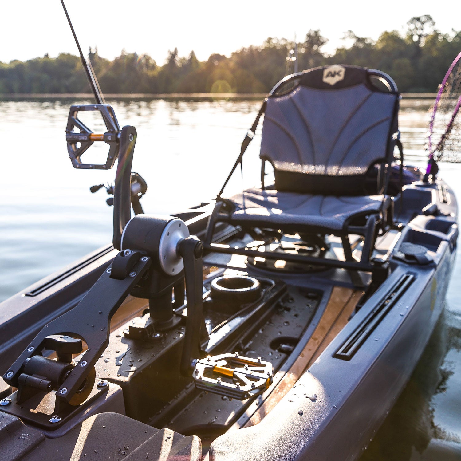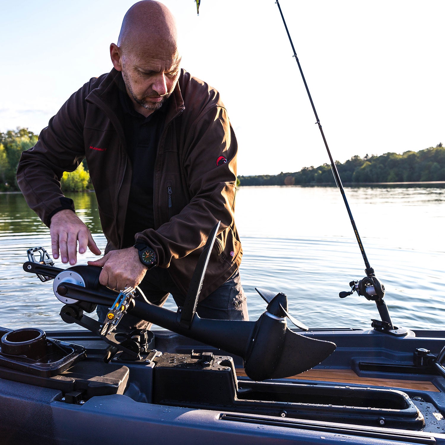 La leva di comando è facilmente raggiungibile dal sedile. Dirige il timone di poppa in piccole dosi nella direzione desiderata mentre pedala.