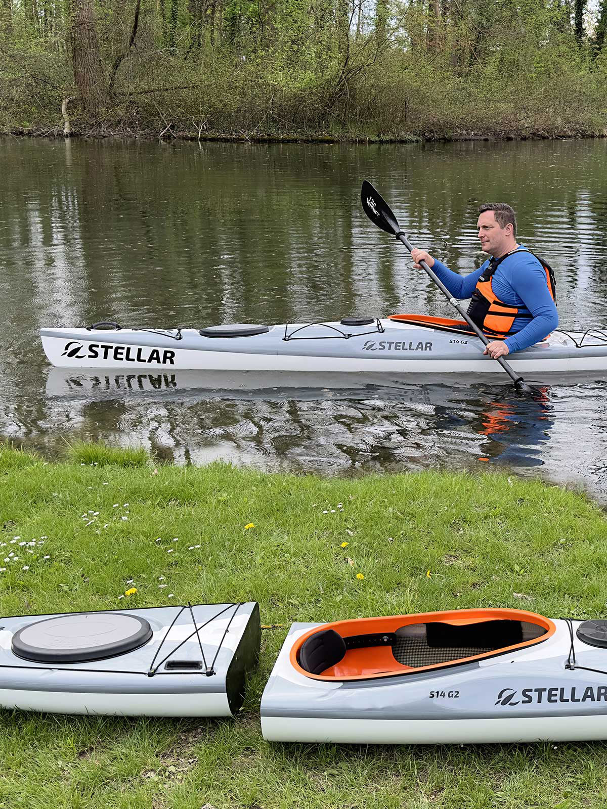 Con i kayak divisibili per il tempo libero di Stellar, c'è finalmente una soluzione per un ✔︎ kayak leggero che è facile da trasportare e ✔︎ molto facile da pagaiare!