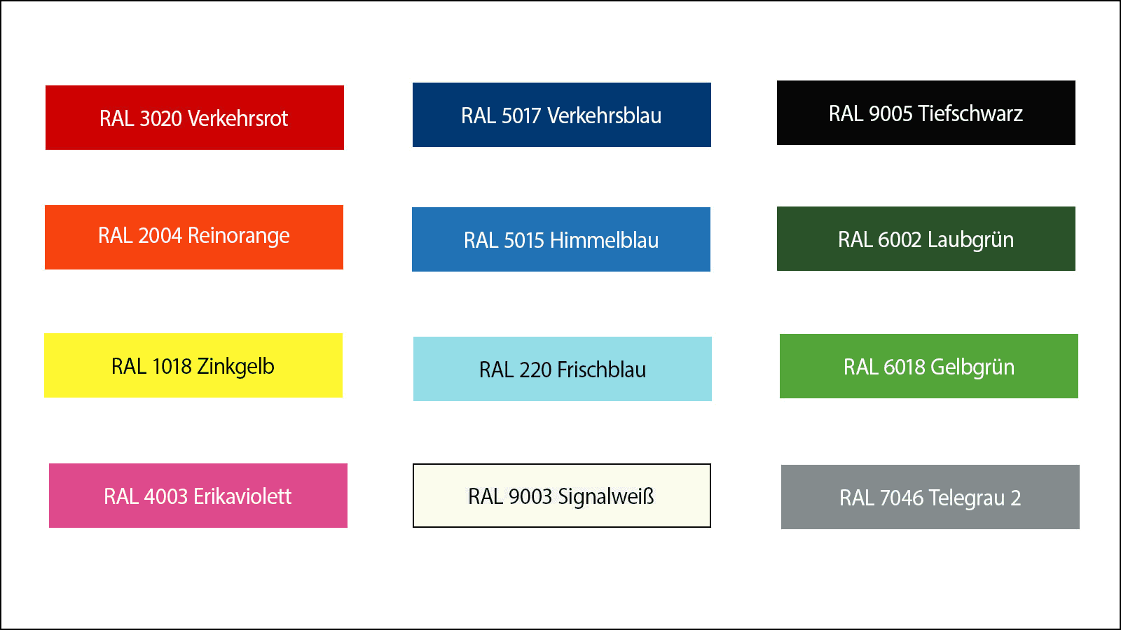 Du kannst aus den untenstehenden Farben wählen und diese kombinieren auf Unterschiff / Deck / Deckstreifen / Süllrand & Sitz sowie seitliches Nahtband und Kielstreifen. Wenn du Sitz und Süllrand farblich absetzen möchtest ist das möglich mit einem Aufpreis von 100,– € (Einerkajak) / 150,– € (Zweierkajak). Kostenloser Standard ist Schwarz, Farbbeispiele siehe unten.