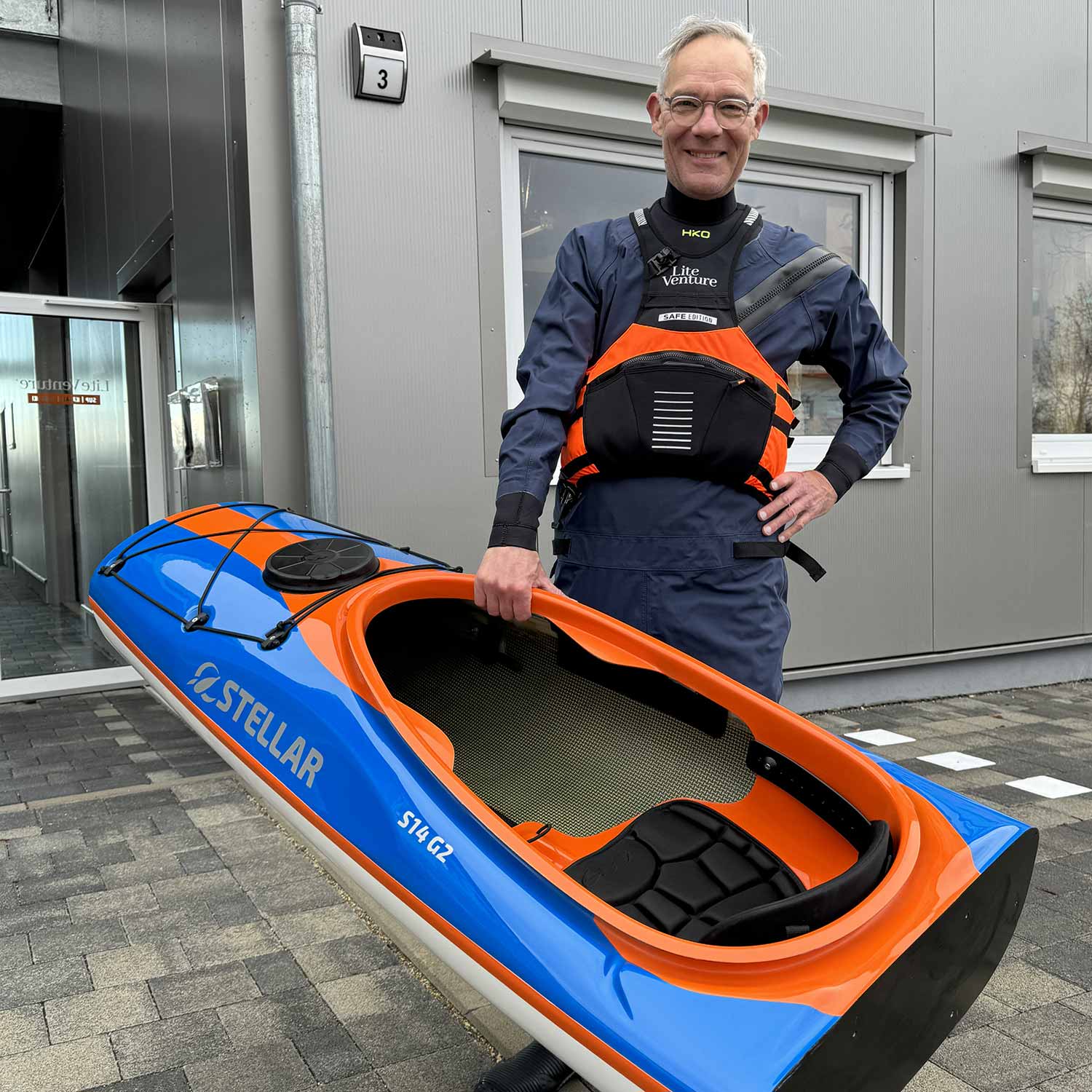 Wir können jedes Modell von Stellar aus der aktuellen Palette nach eigenen Wünschen für dich bestellen. Mit dem 3-D-Konfigurator kannst du einen sehr guten Farbeindruck gewinnen, auch wenn das vorerst nur mit dem Modell S14 G2 möglich ist. Wenn du einen Favoriten hast, dann rufe uns doch an: +49 (0)7634/3409871 oder schreibe eine E-Mail. Wir bestellen dein persönliches Traumkajak und packen es mit in die nächste Lieferung!