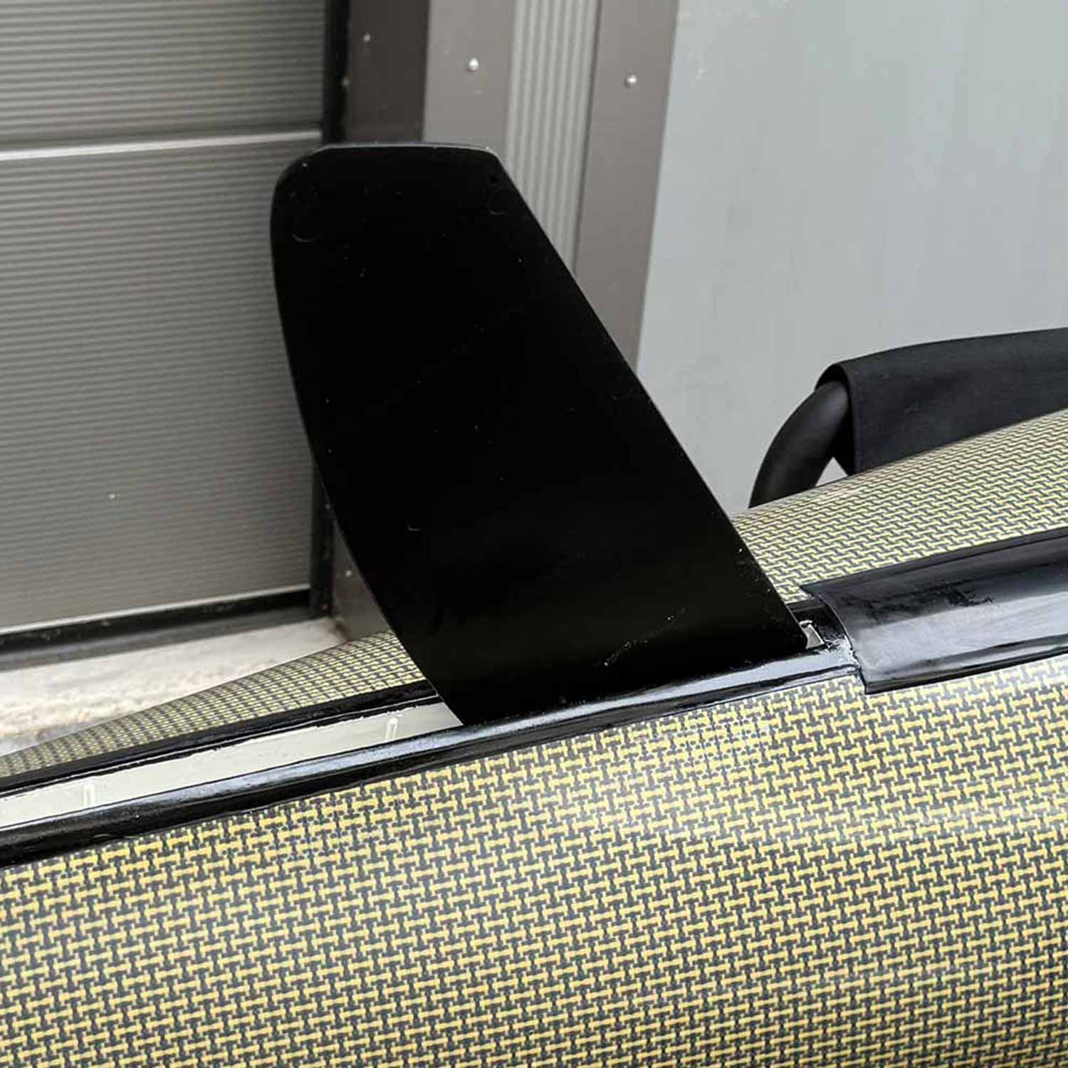 Beim Apex Design laufen Deckstreifen- und Sitzschalen-Farbe am Heck in drei Streifen aus. Aufpreis 250 €, nur möglich bei Surfski.