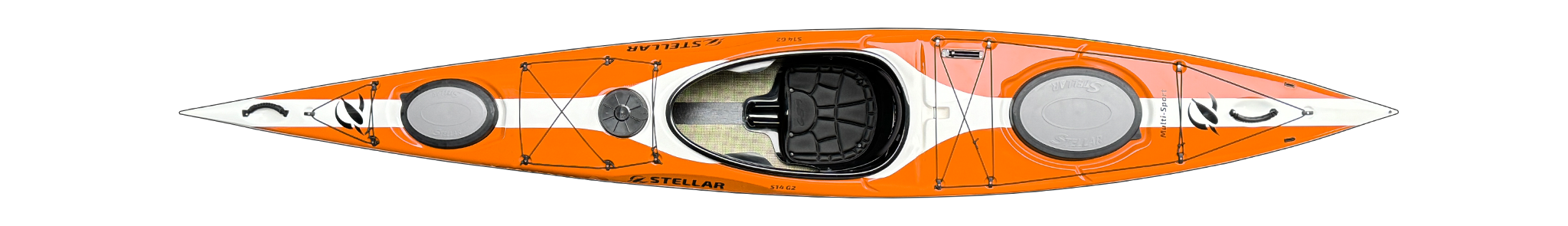 Bei allen Stellar Kajaks kann bei individuellen Bestellungen ein Kevlar Kielstreifen ergänzt werden. Bei vorrätigen S14 G2 ist dieser meist schon mit dabei. Er erhöht das Gewicht um rund 700 g.