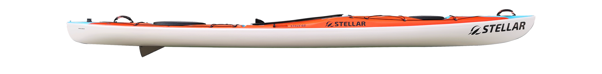 Bei allen Stellar Kajaks kann bei individuellen Bestellungen ein Kevlar Kielstreifen ergänzt werden. Bei vorrätigen S14LV ist dieser meist schon mit dabei. Er erhöht das Gewicht um rund 700 g.
