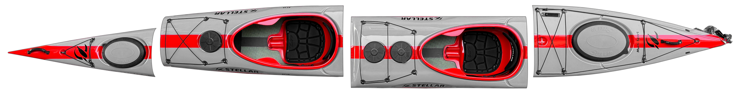 Dieses Tandem ist bahnbrechend! Es ist modular als Tandem und Solo nutzbar und kommt mit allen herausragenden Leichtbau-Eigenschaften eines Stellar Kajaks. Die Teile sind also nicht nur handlich kurz, sondern auch superleicht: