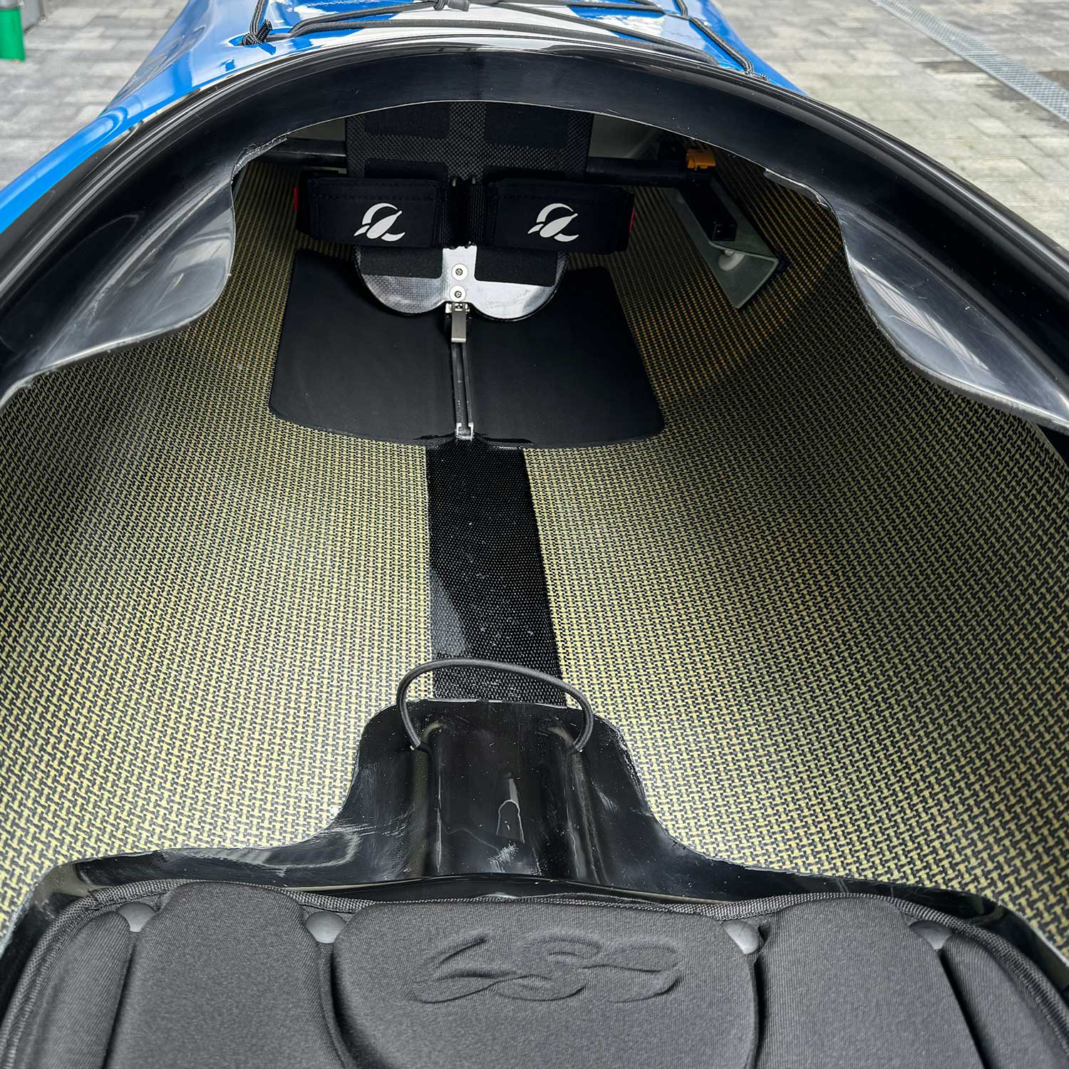 Das Cockpit des Stellar ST21 ist 81 x 44 cm groß. Es ermöglicht einen bequemen Ein- und Ausstieg und die Möglichkeit der mittigen Beinposition passend zur QR-Track Steuerung (mittige Platte).
