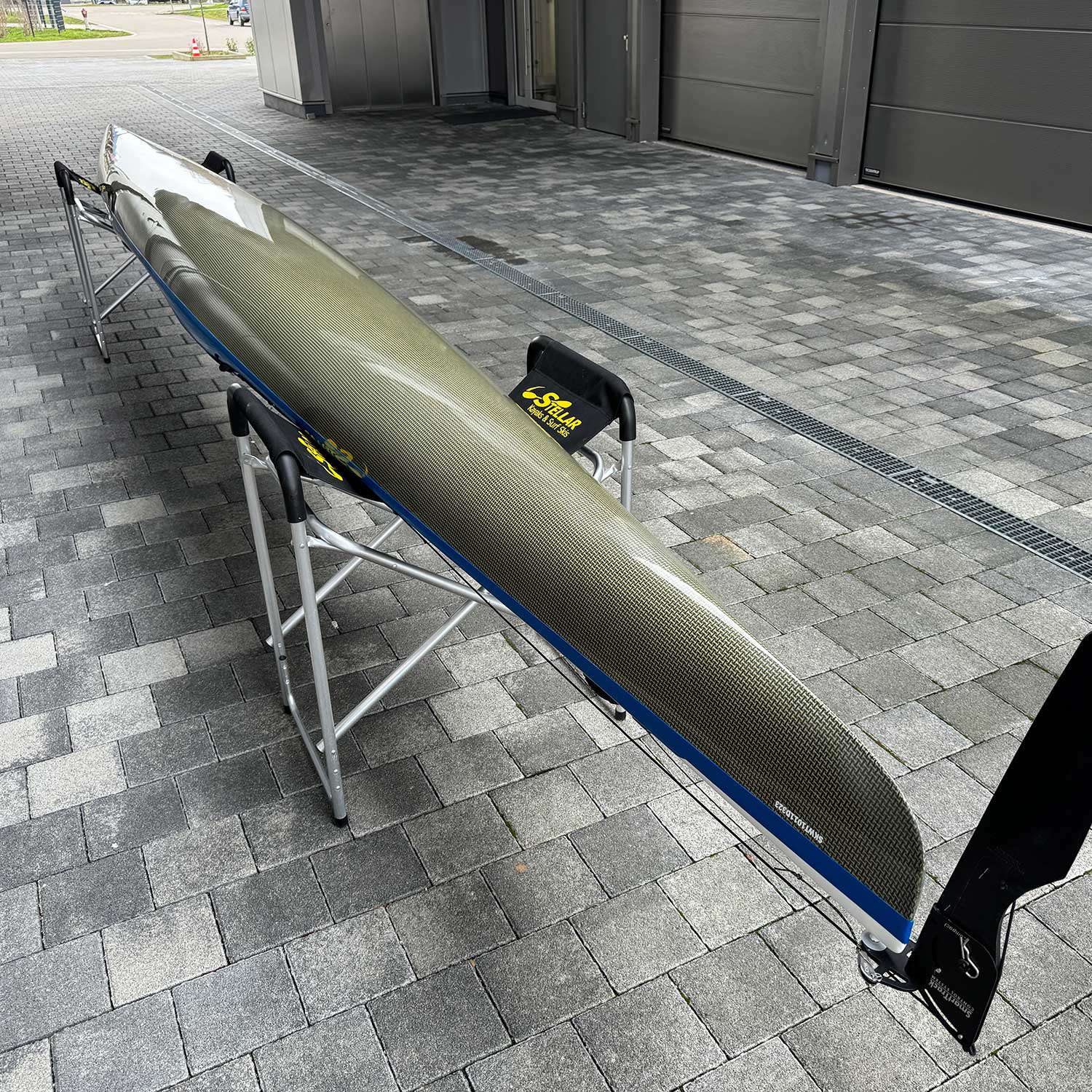 Wir wählen für die schnellen Tourer von Stellar standardmäßig das Multisport Layup, d. h. mit Carbon / Kevlar Unterschiff. In dieser Variante wiegt der Tandem Racer ST21 lediglich 25 kg, ist jedoch mit dem robustesten Layup ausgestattet.