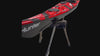 Hier in der robusten Ausführung im Carbon/Kevlar Layup, Kielstreifen, Skeg und rotem Deck. Das Carbon/Kevlar Gewebe hat die Stärke 210 g/qm² und ist über das gesamte Unterschiff sowie am Deck sichtbar. Der Kielstreifen ist schwarz.